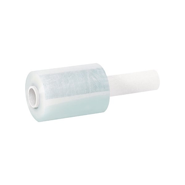 Bundling film features a built in handle so each roll is ready to use right out of the box. Easy to hold 1'' diameter core; More economical and faster to use than strapping or tape; Film will not leave a residue on products; Quiet and clear cast film. Sold in a quantity of 12 per case.