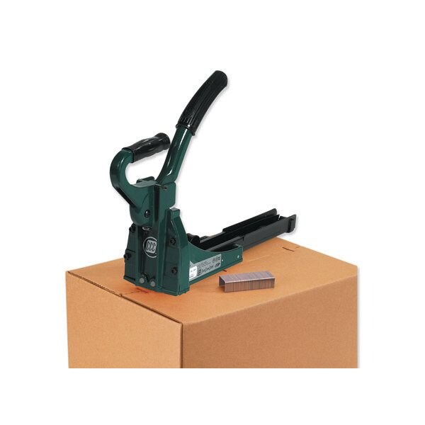 Economical, hand operated stapler is great for use on low volume packaging lines. Manual stapler does not require compressed air; Built-in, auxiliary handle for easy carrying and consistent hand stapling; Penetration control adjusts to various carton thicknesses; 150 ''C'' staple capacity. This product is equivalent to part number: H-1025.