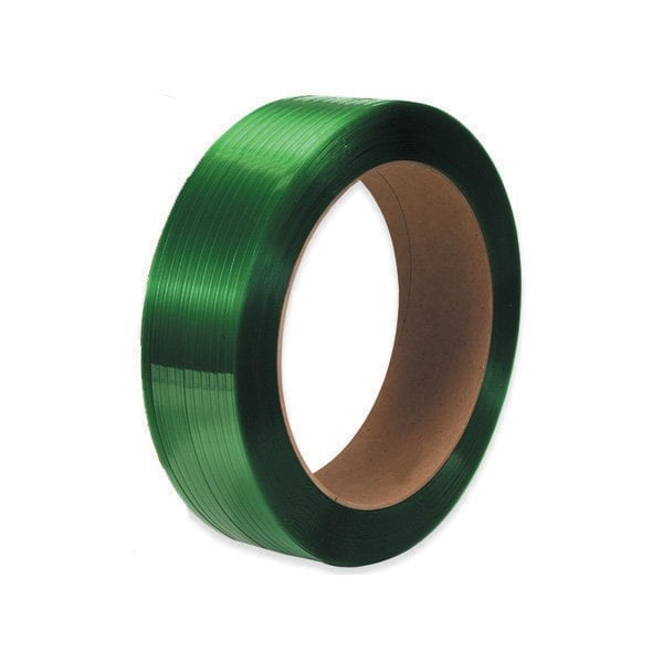 5/8'' x 2200' - 16 x 3'' Core Polyester Strapping, Green - Smooth - 4400'