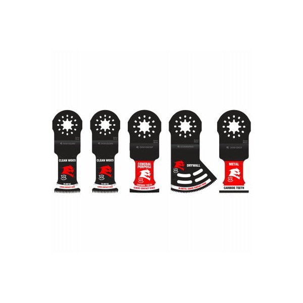 Diablo, 5 piece Starlock general purpose oscillating blade set Set consists of 114 bimetal blade for nailembedded wood, 114 bimetal blade for clean wood, 114 carbide blade for general purpose cuts, 114 carbide blade for metal and 2 bimetal blade for drywall Diablo's Starlock oscillating blade set features application specific blades ranging from nailembedded wood, clean wood, metal, plastics and drywall Included are highperformance carbide and bimetal blades sure to deliver unmatched durability, life and quality of cut in any job Tool free quickchange interface fits Fein and other Starlock tools, also compatible with most NonStarlock multitools