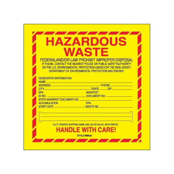 6 x 6'' - ''Hazardous Waste - New Jersey'' Labels, 500PK