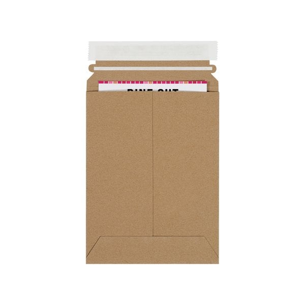 Strong chipboard mailers protect photos and documents during shipping. Manufactured from .028 kraft chipboard; Lightweight to save on postage; No additional stiffeners needed; Peel-and-seal closure; Pull tab tear strip for easy opening. This product is equivalent to part number: S-5613. Sold in a quantity of 100 per case.