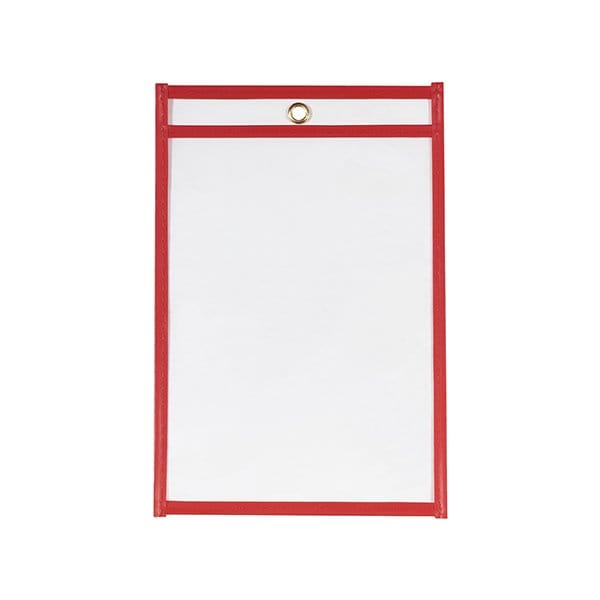 Store and protect work orders, production papers and inventory cards in these Job Ticket Holders. Taped and stitched black edges provide added strength and extended product life; Provides protection while allowing easy visibility of documents; Clear both sides; Convenient metal eyelet at top for hanging. This product is equivalent to part number: S-2760R. Sold in a quantity of 25 per case.
