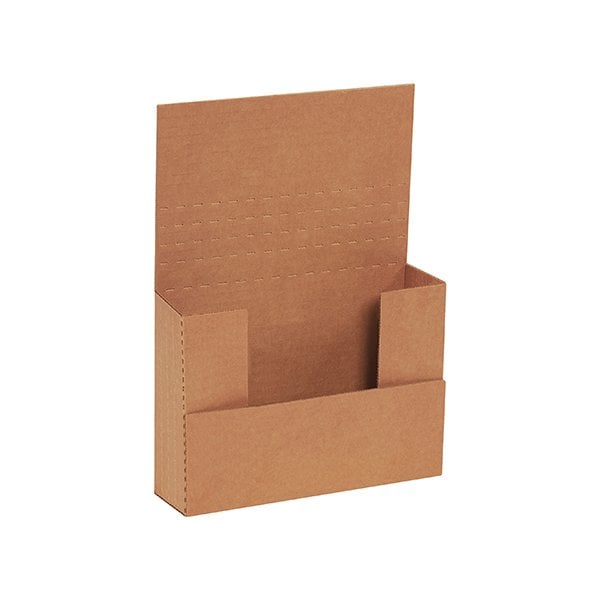 Economical kraft construction helps reduce mailing costs. These one-piece mailers have scores at multiple depths to ensure the proper fit for your products; Simply place product in the center, fold in the sides at your desired depth and seal with tape; Economical 200#/ECT-32-B, kraft corrugated construction. This product is equivalent to part number: S-5821. Sold in a quantity of 50 per pack.