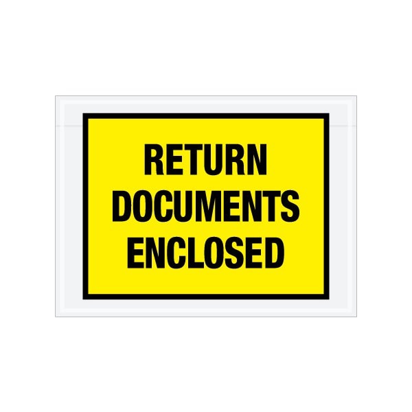 7-1/2 x 5-1/2'' Yellow ''Return Documents Enclosed'' Envelopes, 1000PK