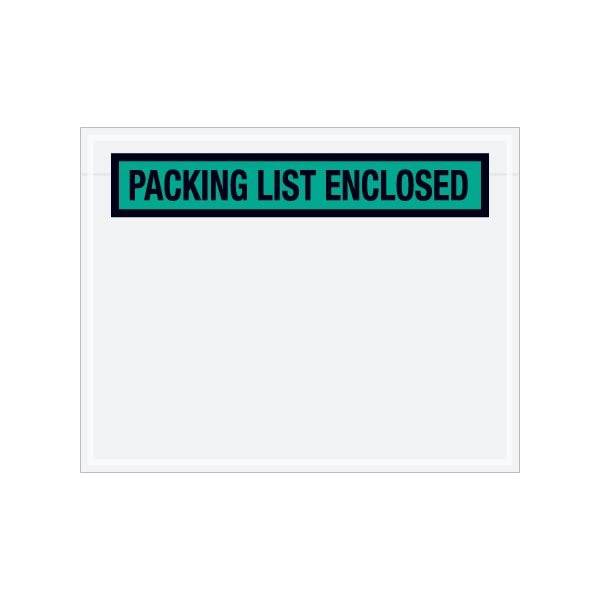 Pressure sensitive packing list envelopes secure and protect documents that are attached to the outside of shipments. Panel face, colored Packing List Envelopes are pre-printed with ''Packing List Enclosed'' on heavy 2 Mil poly; Hot melt adhesive backing provides strong adhesion to paper and corrugated products; Envelopes open along the first dimension. Sold in a quantity of 1000 per case.