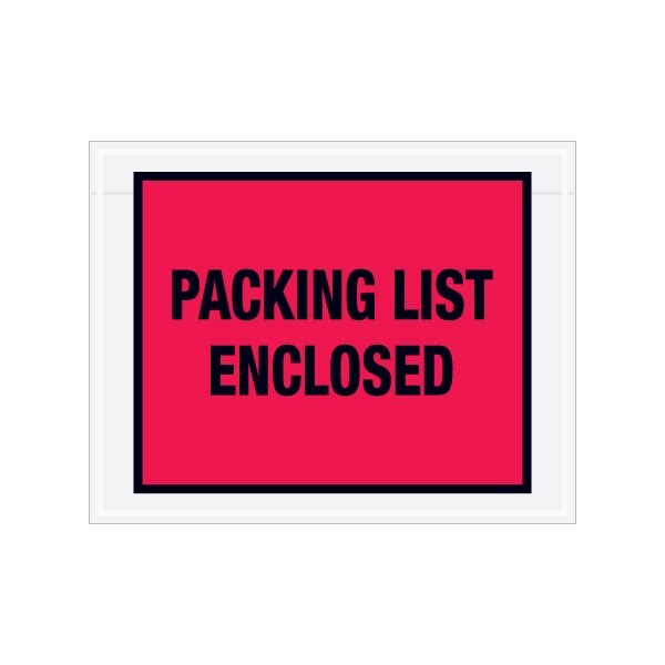 Pressure sensitive packing list envelopes secure and protect documents that are attached to the outside of shipments. Full face, colored Packing List Envelopes are pre-printed with ''Packing List Enclosed'' on heavy 2 Mil poly; Hot melt adhesive backing provides strong adhesion to paper and corrugated products; Envelopes open along the first dimension. Sold in a quantity of 1000 per case.