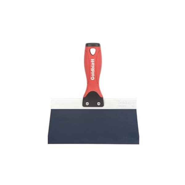 Drywall Taping Knife Blue Steel 8in. The Goldblatt Pro series taping knives are among the best drywall finishing knives on the market. Developed using a panel of professional finishers these knives offer the flexibility and feel that will satisfy even the most demanding users. Uniquely balanced with proper flexible blades to ensure perfect feathering and finishing. Crafted with a unique tapered ergo-grip and rugged hammer-end optional. Available in 6-inch 8-inch10-inch12-inch and 14-inch sizes.