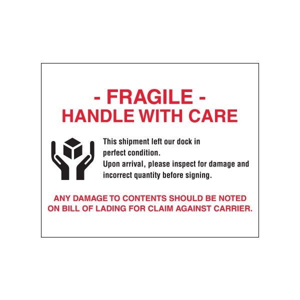 8 x 10'' - ''Fragile - Handle With Care'' Labels, Style 1, 250PK