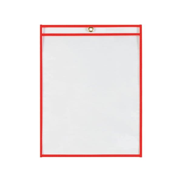 Taped and stitched, bright neon edges make job orders stand out. Manufactured from strong, rigid, clear vinyl; Provides protection while allowing easy visibility of documents; Clear both sides; Reinforced stitched edge for extended product life; Metal eyelet for hanging. This product is equivalent to part number: S-2761R. Sold in a quantity of 15 per case.