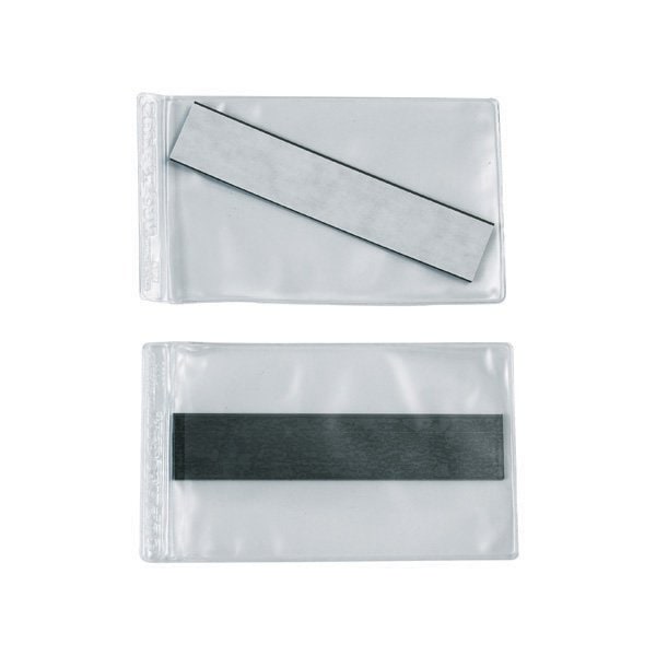 Great for attaching information on metal racks or machinery. Magnetic backing allows for easy label relocation; Features a clear, matte finish and a side load design; White inserts for laser/inkjet printing included. This product is equivalent to part number: S-7150. Sold in a quantity of 50 per case.