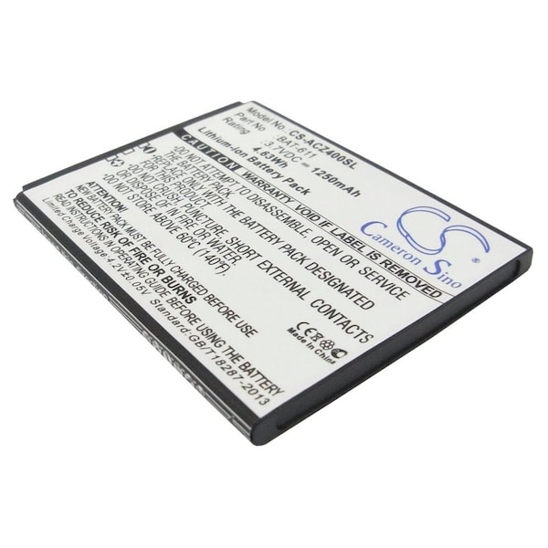 This is a replacement compatible with a Acer Mobile Phone BatteryVolts: 3.7V 3.7 VoltsCapacity: 1250mAh 1.25AhType: Li-ionColor: BlackAcer Liquid Z4 Z140 Z160 Replacement Batteries.Mfgr Part # BAT-611 KT.0010B.006Dimensions: 2.55 in. L x 1.95 in. W x 0.18 H in.Weight: 0.1 lbWarranty: 1 YearDisclaimer: Our products are not affiliated with or authorized by Acer.FAQsWhat is the best replacement battery for the Acer Liquid Z4 Z140 Z160 Mobile Phone Battery?The CS-ACZ400SL is the best replacement battery for the Acer Liquid Z4 Z140 Z160 Mobile Phone Battery. What is your return policy and battery warranty?Our batteries are backed by easy 30-day returns and a 12-month warranty. How do I find the best replacement Battery?Our search tool at the top of the website should give you the best results. Search by brand or part number to see if we have the right match for you. What does Li-ion and Ni-MH mean?They represent different types of rechargeable batteries. Li-ion stands for Lithium Ion, lithium ions move from the negative electrode through an electrolyte to the positive electrode during discharge and back when charging. Ni-MH stands for nickel-metal hydride where the negative electrode is made from a hydrogen-absorbing alloy. Do you have a wholesale, reseller and large volume purchase program?Yes, our bulk purchasing program saves you money and allow you to obtain the batteries you need in one easy, hassle-free transaction. Apply here.