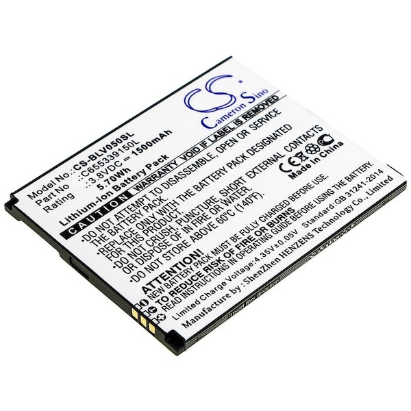 This is a replacement compatible with a BLU Mobile Phone BatteryVolts: 3.8V 3.8 VoltsCapacity: 1500mAh 1.5AhType: Li-ionBLU V050 Vivo 5 Mini Replacement Batteries.Mfgr Part # C655339150LDimensions: 2.55 in. L x 2.09 in. W x 0.16 H in.Weight: 0.1 lbWarranty: 1 YearDisclaimer: Our products are not affiliated with or authorized by BLU.FAQsWhat is the best replacement battery for the BLU V050 Vivo 5 Mini Mobile Phone Battery?The CS-BLV050SL is the best replacement battery for the BLU V050 Vivo 5 Mini Mobile Phone Battery. What is your return policy and battery warranty?Our batteries are backed by easy 30-day returns and a 12-month warranty. How do I find the best replacement Battery?Our search tool at the top of the website should give you the best results. Search by brand or part number to see if we have the right match for you. What does Li-ion and Ni-MH mean?They represent different types of rechargeable batteries. Li-ion stands for Lithium Ion, lithium ions move from the negative electrode through an electrolyte to the positive electrode during discharge and back when charging. Ni-MH stands for nickel-metal hydride where the negative electrode is made from a hydrogen-absorbing alloy. Do you have a wholesale, reseller and large volume purchase program?Yes, our bulk purchasing program saves you money and allow you to obtain the batteries you need in one easy, hassle-free transaction. Apply here.