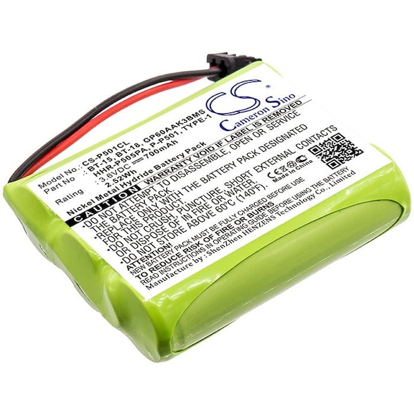 This is a replacement compatible with a Casio Cordless Phone BatteryVolts: 3.6V 3.6 VoltsCapacity: 700mAh 0.7AhType: Ni-MHColor: BlackCasio CP-1218 Replacement Batteries.Dimensions: 2 in. L x 1.67 in. W x 0.56 H in.Weight: 0.3 lbWarranty: 1 YearDisclaimer: Our products are not affiliated with or authorized by Casio.FAQsWhat is the best replacement battery for the Casio CP-1218 700mAh Cordless Phone Battery?The CS-P501CL.3 is the best replacement battery for the Casio CP-1218 700mAh Cordless Phone Battery. What is your return policy and battery warranty?Our batteries are backed by easy 30-day returns and a 12-month warranty. How do I find the best replacement Battery?Our search tool at the top of the website should give you the best results. Search by brand or part number to see if we have the right match for you. What does Li-ion and Ni-MH mean?They represent different types of rechargeable batteries. Li-ion stands for Lithium Ion, lithium ions move from the negative electrode through an electrolyte to the positive electrode during discharge and back when charging. Ni-MH stands for nickel-metal hydride where the negative electrode is made from a hydrogen-absorbing alloy. Do you have a wholesale, reseller and large volume purchase program?Yes, our bulk purchasing program saves you money and allow you to obtain the batteries you need in one easy, hassle-free transaction. Apply here.