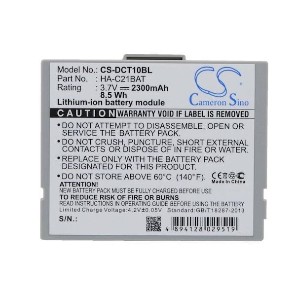 This is a replacement compatible with a Casio Barcode BatteryVolts: 3.7V 3.7 VoltsCapacity: 2300mAh 2.3AhType: Li-ionColor: White & GrayCasio IT10 Replacement Batteries.Mfgr Part # HA-C21BATDimensions: 2.86 in. L x 2.36 in. W x 0.32 H in.Weight: 0.2 lbWarranty: 1 YearDisclaimer: Our products are not affiliated with or authorized by Casio.FAQsWhat is the best replacement battery for the Casio IT10 Barcode Battery?The CS-DCT10BL is the best replacement battery for the Casio IT10 Barcode Battery. What is your return policy and battery warranty?Our batteries are backed by easy 30-day returns and a 12-month warranty. How do I find the best replacement Battery?Our search tool at the top of the website should give you the best results. Search by brand or part number to see if we have the right match for you. What does Li-ion and Ni-MH mean?They represent different types of rechargeable batteries. Li-ion stands for Lithium Ion, lithium ions move from the negative electrode through an electrolyte to the positive electrode during discharge and back when charging. Ni-MH stands for nickel-metal hydride where the negative electrode is made from a hydrogen-absorbing alloy. Do you have a wholesale, reseller and large volume purchase program?Yes, our bulk purchasing program saves you money and allow you to obtain the batteries you need in one easy, hassle-free transaction. Apply here.