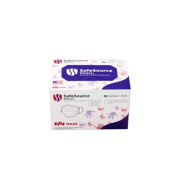 Berry Amendment Compliant! Non-Medical, 3-Ply Blue Face Mask, Childrens with Ear Loop, 50 EA/BX, 24BX/CS