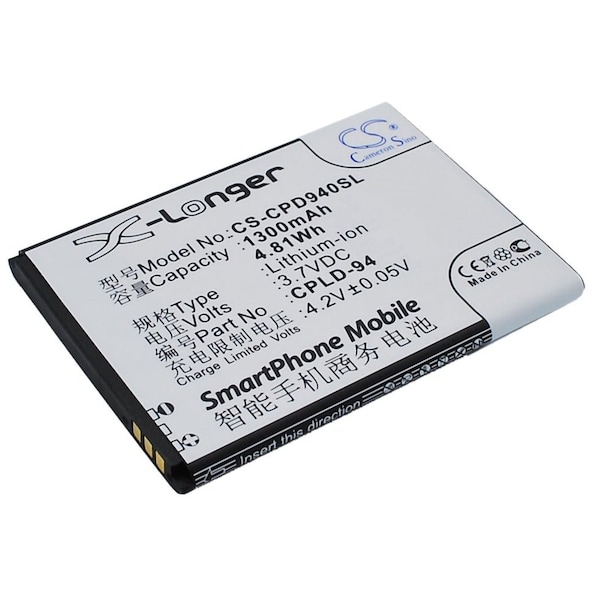 This is a replacement compatible with a Coolpad Mobile Phone BatteryVolts: 3.7V 3.7 VoltsCapacity: 1300mAh 1.3AhType: Li-ionColor: BlackCoolpad 5210S 7011 7019A 7020 Replacement Batteries.Mfgr Part # CPLD-94Dimensions: 2.56 in. L x 1.89 in. W x 0.16 H in.Weight: 0.1 lbWarranty: 1 YearDisclaimer: Our products are not affiliated with or authorized by Coolpad.FAQsWhat is the best replacement battery for the Coolpad 5210S 7011 7019A 7020 Mobile Phone Battery?The CS-CPD940SL is the best replacement battery for the Coolpad 5210S 7011 7019A 7020 Mobile Phone Battery. What is your return policy and battery warranty?Our batteries are backed by easy 30-day returns and a 12-month warranty. How do I find the best replacement Battery?Our search tool at the top of the website should give you the best results. Search by brand or part number to see if we have the right match for you. What does Li-ion and Ni-MH mean?They represent different types of rechargeable batteries. Li-ion stands for Lithium Ion, lithium ions move from the negative electrode through an electrolyte to the positive electrode during discharge and back when charging. Ni-MH stands for nickel-metal hydride where the negative electrode is made from a hydrogen-absorbing alloy. Do you have a wholesale, reseller and large volume purchase program?Yes, our bulk purchasing program saves you money and allow you to obtain the batteries you need in one easy, hassle-free transaction. Apply here.