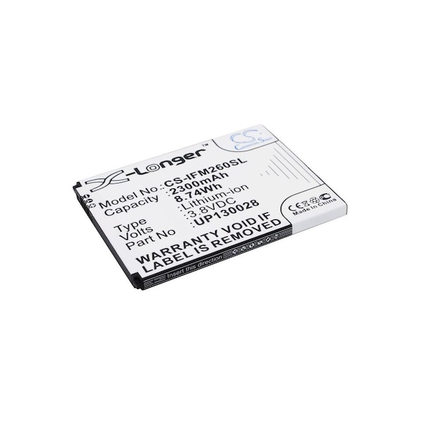 This is a replacement compatible with a cus Mobile Phone BatteryVolts: 3.8V 3.8 VoltsCapacity: 2300mAh 2.3AhType: Li-ionColor: Blackcus IN260 IN310 M210 M310 Replacement Batteries.Mfgr Part # UP130028Dimensions: 2.88 in. L x 2.2 in. W x 0.19 H in.Weight: 0.1 lbWarranty: 1 YearDisclaimer: Our products are not affiliated with or authorized by cus.FAQsWhat is the best replacement battery for the cus IN260 IN310 M210 M310 Mobile Phone Battery?The CS-IFM260SL is the best replacement battery for the cus IN260 IN310 M210 M310 Mobile Phone Battery. What is your return policy and battery warranty?Our batteries are backed by easy 30-day returns and a 12-month warranty. How do I find the best replacement Battery?Our search tool at the top of the website should give you the best results. Search by brand or part number to see if we have the right match for you. What does Li-ion and Ni-MH mean?They represent different types of rechargeable batteries. Li-ion stands for Lithium Ion, lithium ions move from the negative electrode through an electrolyte to the positive electrode during discharge and back when charging. Ni-MH stands for nickel-metal hydride where the negative electrode is made from a hydrogen-absorbing alloy. Do you have a wholesale, reseller and large volume purchase program?Yes, our bulk purchasing program saves you money and allow you to obtain the batteries you need in one easy, hassle-free transaction. Apply here.