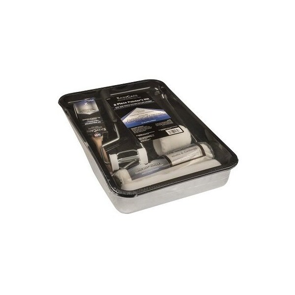 EasyCare 8 Piece Metal Paint Tray Set Includes 2 - 9 x 3/8 Woven Roller Cover 9 5-Wire Roller Frame A Deep Wall Metal Paint Tray 2 Angle Sash Wooden Handle Brush 2 - 3 Mini Roller Covers 3 Mini Trim Roller Frame.
