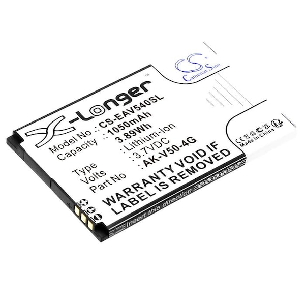 This is a replacement compatible with a Emporia Mobile Phone BatteryVolts: 3.7V 3.7 VoltsCapacity: 1050mAh 1.05AhType: Li-ionColor: BlackEmporia Active V50 Active V50 4G Replacement Batteries.Mfgr Part # AK-V50-4GDimensions: 2.62 in. L x 1.66 in. W x 0.16 H in.Weight: 0.1 lbWarranty: 1 YearDisclaimer: Our products are not affiliated with or authorized by Emporia.FAQsWhat is the best replacement battery for the Emporia Active V50 Active V50 4G Mobile Phone Battery?The CS-EAV540SL is the best replacement battery for the Emporia Active V50 Active V50 4G Mobile Phone Battery. What is your return policy and battery warranty?Our batteries are backed by easy 30-day returns and a 12-month warranty. How do I find the best replacement Battery?Our search tool at the top of the website should give you the best results. Search by brand or part number to see if we have the right match for you. What does Li-ion and Ni-MH mean?They represent different types of rechargeable batteries. Li-ion stands for Lithium Ion, lithium ions move from the negative electrode through an electrolyte to the positive electrode during discharge and back when charging. Ni-MH stands for nickel-metal hydride where the negative electrode is made from a hydrogen-absorbing alloy. Do you have a wholesale, reseller and large volume purchase program?Yes, our bulk purchasing program saves you money and allow you to obtain the batteries you need in one easy, hassle-free transaction. Apply here.