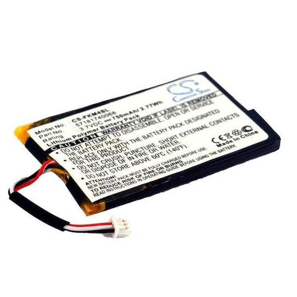 This is a replacement compatible with a Falk GPS BatteryVolts: 3.7V 3.7 VoltsCapacity: 750mAh 0.75AhType: Li-PolymerColor: BlackFalk M2 M4 M6 M8 Replacement Batteries.Mfgr Part # 57181740068Dimensions: 2.01 in. L x 1.33 in. W x 0.14 H in.Weight: 0.1 lbWarranty: 1 YearDisclaimer: Our products are not affiliated with or authorized by Falk.FAQsWhat is the best replacement battery for the Falk M2 M4 M6 M8 GPS Battery?The CS-FKM4SL is the best replacement battery for the Falk M2 M4 M6 M8 GPS Battery. What is your return policy and battery warranty?Our batteries are backed by easy 30-day returns and a 12-month warranty. How do I find the best replacement Battery?Our search tool at the top of the website should give you the best results. Search by brand or part number to see if we have the right match for you. What does Li-ion and Ni-MH mean?They represent different types of rechargeable batteries. Li-ion stands for Lithium Ion, lithium ions move from the negative electrode through an electrolyte to the positive electrode during discharge and back when charging. Ni-MH stands for nickel-metal hydride where the negative electrode is made from a hydrogen-absorbing alloy. Do you have a wholesale, reseller and large volume purchase program?Yes, our bulk purchasing program saves you money and allow you to obtain the batteries you need in one easy, hassle-free transaction. Apply here.