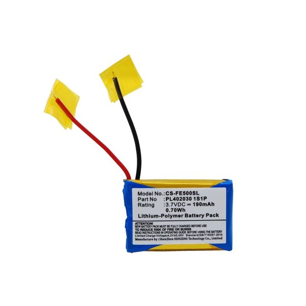 This is a replacement compatible with a Fiio Amplifier BatteryVolts: 3.7V 3.7 VoltsCapacity: 190mAh 0.19AhType: Li-PolymerColor: BlackFiio E3 E5 E6 Replacement Batteries.Mfgr Part # PL402030 1S1PDimensions: 1.25 in. L x 0.81 in. W x 0.19 H in.Weight: 0.1 lbWarranty: 1 YearDisclaimer: Our products are not affiliated with or authorized by Fiio.FAQsWhat is the best replacement battery for the Fiio E3 E5 E6 Amplifier Battery?The CS-FE500SL is the best replacement battery for the Fiio E3 E5 E6 Amplifier Battery. What is your return policy and battery warranty?Our batteries are backed by easy 30-day returns and a 12-month warranty. How do I find the best replacement Battery?Our search tool at the top of the website should give you the best results. Search by brand or part number to see if we have the right match for you. What does Li-ion and Ni-MH mean?They represent different types of rechargeable batteries. Li-ion stands for Lithium Ion, lithium ions move from the negative electrode through an electrolyte to the positive electrode during discharge and back when charging. Ni-MH stands for nickel-metal hydride where the negative electrode is made from a hydrogen-absorbing alloy. Do you have a wholesale, reseller and large volume purchase program?Yes, our bulk purchasing program saves you money and allow you to obtain the batteries you need in one easy, hassle-free transaction. Apply here.