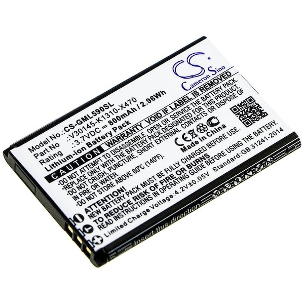 This is a replacement compatible with a Gigaset Mobile Phone BatteryVolts: 3.7V 3.7 VoltsCapacity: 800mAh 0.8AhType: Li-ionColor: BlackGigaset GL590 Replacement Batteries.Mfgr Part # V30145-K1310-X470Dimensions: 2.09 in. L x 1.34 in. W x 0.19 H in.Weight: 0.1 lbWarranty: 1 YearDisclaimer: Our products are not affiliated with or authorized by Gigaset.FAQsWhat is the best replacement battery for the Gigaset GL590 Mobile Phone Battery?The CS-GML590SL is the best replacement battery for the Gigaset GL590 Mobile Phone Battery. What is your return policy and battery warranty?Our batteries are backed by easy 30-day returns and a 12-month warranty. How do I find the best replacement Battery?Our search tool at the top of the website should give you the best results. Search by brand or part number to see if we have the right match for you. What does Li-ion and Ni-MH mean?They represent different types of rechargeable batteries. Li-ion stands for Lithium Ion, lithium ions move from the negative electrode through an electrolyte to the positive electrode during discharge and back when charging. Ni-MH stands for nickel-metal hydride where the negative electrode is made from a hydrogen-absorbing alloy. Do you have a wholesale, reseller and large volume purchase program?Yes, our bulk purchasing program saves you money and allow you to obtain the batteries you need in one easy, hassle-free transaction. Apply here.