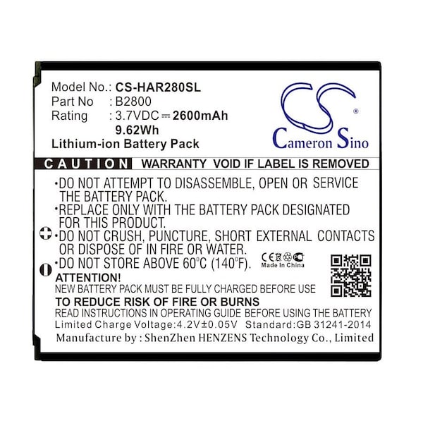 This is a replacement compatible with a Highscreen Mobile Phone BatteryVolts: 3.7V 3.7 VoltsCapacity: 2600mAh 2.6AhType: Li-ionColor: BlackHighscreen Omega Prime XL Replacement Batteries.Mfgr Part # B2800Dimensions: 2.76 in. L x 2.01 in. W x 0.17 H in.Weight: 0.2 lbWarranty: 1 YearDisclaimer: Our products are not affiliated with or authorized by Highscreen.FAQsWhat is the best replacement battery for the Highscreen Omega Prime XL Mobile Phone Battery?The CS-HAR280SL is the best replacement battery for the Highscreen Omega Prime XL Mobile Phone Battery. What is your return policy and battery warranty?Our batteries are backed by easy 30-day returns and a 12-month warranty. How do I find the best replacement Battery?Our search tool at the top of the website should give you the best results. Search by brand or part number to see if we have the right match for you. What does Li-ion and Ni-MH mean?They represent different types of rechargeable batteries. Li-ion stands for Lithium Ion, lithium ions move from the negative electrode through an electrolyte to the positive electrode during discharge and back when charging. Ni-MH stands for nickel-metal hydride where the negative electrode is made from a hydrogen-absorbing alloy. Do you have a wholesale, reseller and large volume purchase program?Yes, our bulk purchasing program saves you money and allow you to obtain the batteries you need in one easy, hassle-free transaction. Apply here.