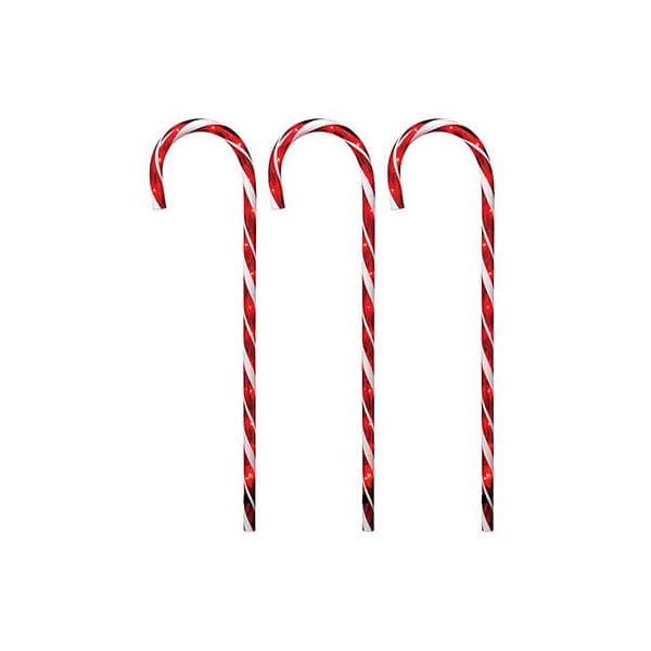 Holiday Wonderland 3 Piece 27 Red Transparent Pathway Candy Cane 12 Clear Lights Per Candy Cane 24 Lead 20 Spacing 3.5 End Indoor/Outdoor Stakes Included Shrinked Wrapped With Artwork Sleeve On Both Ends UL Listed.