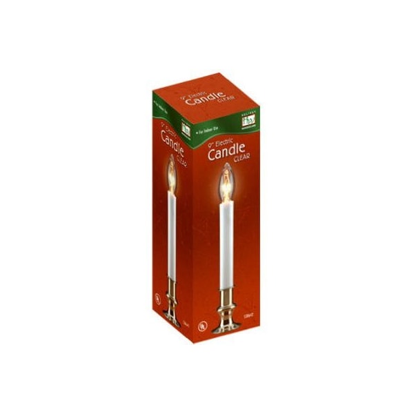 Holiday Wonderland 9 Clear Bulb Electric Candle With Brass Base 5 Cord With On/Off Switch.