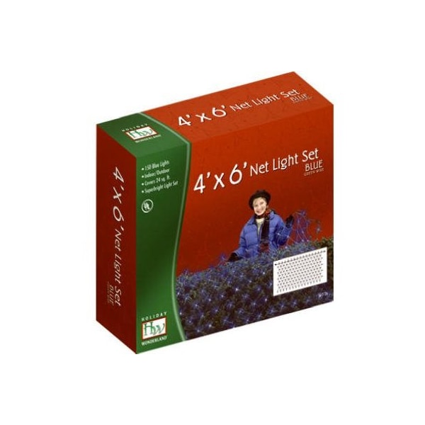 Holiday Wonderland 150 Count Blue Bulbs Net-Style Light Set With End Connector Size 4 x 6 24 Lead Wire Green Wire.