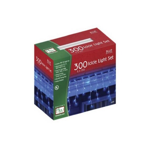 Holiday Wonderland 2 x 150 Light Blue Color Bulb Icicle Light Set White Wire 24 Lead 4 Between Strands 4 E/C 30 Total Strands Per 150 Lights 2.75 Spacing Between Bulbs On Strands Approximately 20 Total Length Bulbs Per Strand 4 x 6 x 4 x 6 x 4 Mini Box Total 300 Lights.