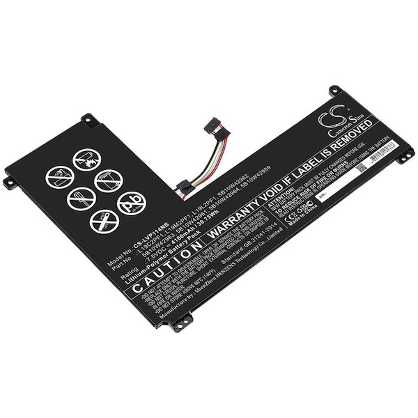 This is a replacement compatible with a Lenovo Laptop and Notebook BatteryVolts: 7.5V 7.5 VoltsCapacity: 4100mAh 4.1AhType: Li-PolymerColor: BlackLenovo IdeaPad 1-11IGL05 IdeaPad 1-14IGL05 Replacement Batteries.Mfgr Part # 5B10W42959 5B10W42961 5B10W42963 5B10W42964 L19C2PF1 L19L2PF1 L19M2PF1 SB10W42962Dimensions: 8.27 in. L x 6.35 in. W x 0.15 H in.Weight: 0.9 lbWarranty: 1 YearDisclaimer: Our products are not affiliated with or authorized by Lenovo.FAQsWhat is the best replacement battery for the Lenovo IdeaPad 1-11IGL05 IdeaPad 1-14IGL05 Laptop and Notebook Battery?The CS-LVP114NB is the best replacement battery for the Lenovo IdeaPad 1-11IGL05 IdeaPad 1-14IGL05 Laptop and Notebook Battery. What is your return policy and battery warranty?Our batteries are backed by easy 30-day returns and a 12-month warranty. How do I find the best replacement Battery?Our search tool at the top of the website should give you the best results. Search by brand or part number to see if we have the right match for you. What does Li-ion and Ni-MH mean?They represent different types of rechargeable batteries. Li-ion stands for Lithium Ion, lithium ions move from the negative electrode through an electrolyte to the positive electrode during discharge and back when charging. Ni-MH stands for nickel-metal hydride where the negative electrode is made from a hydrogen-absorbing alloy. Do you have a wholesale, reseller and large volume purchase program?Yes, our bulk purchasing program saves you money and allow you to obtain the batteries you need in one easy, hassle-free transaction. Apply here.