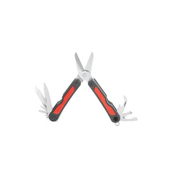 Master Mechanic 10-In-1 Mini Multi-Purpose Tool Display Multi Tool Consists Of: Knife Snips Can Opener Small Slotted Screwdriver Medium Slotted Screwdriver Bottle Opener Phillips Screwdriver Key Ring Hard/Soft File & Awl Anodized Aluminum Handle Lightweight Rust Resistant Display Includes: 3 Black 3 Red 3 Pink & 3 Blue Mini Tools.