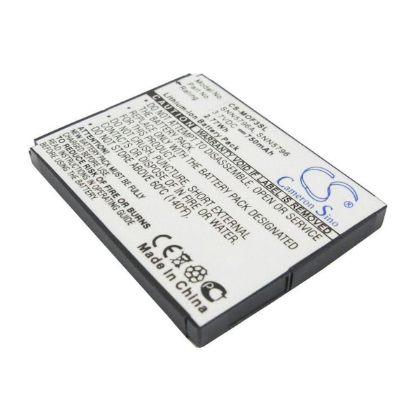 This is a replacement compatible with a Motorola Mobile Phone BatteryVolts: 3.7V 3.7 VoltsCapacity: 750mAh 0.75AhType: Li-ionColor: BlackMotorola EM25 EM325 F3 F3C Replacement Batteries.Mfgr Part # BD50 SNN5796 SNN5796ADimensions: 1.85 in. L x 1.38 in. W x 0.18 H in.Weight: 0.1 lbWarranty: 1 YearDisclaimer: Our products are not affiliated with or authorized by Motorola.FAQsWhat is the best replacement battery for the Motorola EM25 EM325 F3 F3C Mobile Phone Battery?The CS-MOF3SL is the best replacement battery for the Motorola EM25 EM325 F3 F3C Mobile Phone Battery. What is your return policy and battery warranty?Our batteries are backed by easy 30-day returns and a 12-month warranty. How do I find the best replacement Battery?Our search tool at the top of the website should give you the best results. Search by brand or part number to see if we have the right match for you. What does Li-ion and Ni-MH mean?They represent different types of rechargeable batteries. Li-ion stands for Lithium Ion, lithium ions move from the negative electrode through an electrolyte to the positive electrode during discharge and back when charging. Ni-MH stands for nickel-metal hydride where the negative electrode is made from a hydrogen-absorbing alloy. Do you have a wholesale, reseller and large volume purchase program?Yes, our bulk purchasing program saves you money and allow you to obtain the batteries you need in one easy, hassle-free transaction. Apply here.