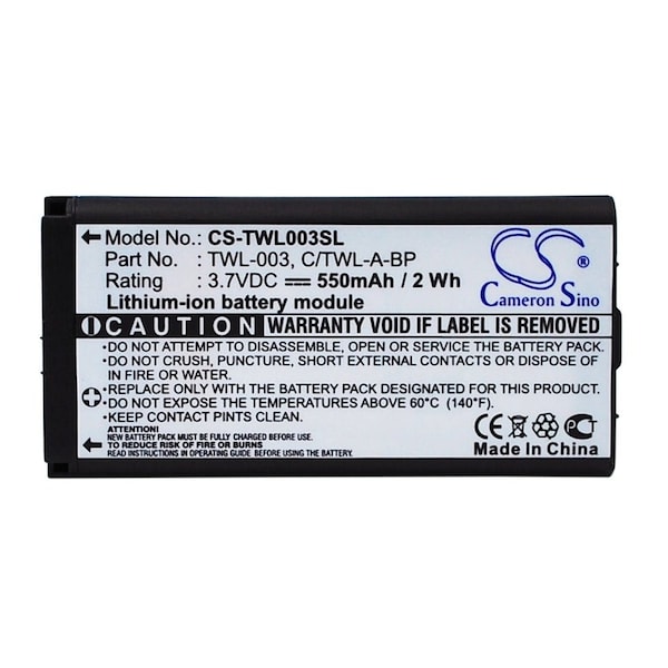 This is a replacement compatible with a Nintendo Game BatteryVolts: 3.7V 3.7 VoltsCapacity: 550mAh 0.55AhType: Li-PolymerColor: BlackNintendo DSi NDSi NDSiL Replacement Batteries.Mfgr Part # C TWL-A-BP TWL-003Dimensions: 2.17 in. L x 1.06 in. W x 0.26 H in.Weight: 0.1 lbWarranty: 1 YearDisclaimer: Our products are not affiliated with or authorized by Nintendo.FAQsWhat is the best replacement battery for the Nintendo DSi NDSi NDSiL 550mAh Game Battery?The CS-TWL003SL is the best replacement battery for the Nintendo DSi NDSi NDSiL 550mAh Game Battery. What is your return policy and battery warranty?Our batteries are backed by easy 30-day returns and a 12-month warranty. How do I find the best replacement Battery?Our search tool at the top of the website should give you the best results. Search by brand or part number to see if we have the right match for you. What does Li-ion and Ni-MH mean?They represent different types of rechargeable batteries. Li-ion stands for Lithium Ion, lithium ions move from the negative electrode through an electrolyte to the positive electrode during discharge and back when charging. Ni-MH stands for nickel-metal hydride where the negative electrode is made from a hydrogen-absorbing alloy. Do you have a wholesale, reseller and large volume purchase program?Yes, our bulk purchasing program saves you money and allow you to obtain the batteries you need in one easy, hassle-free transaction. Apply here.