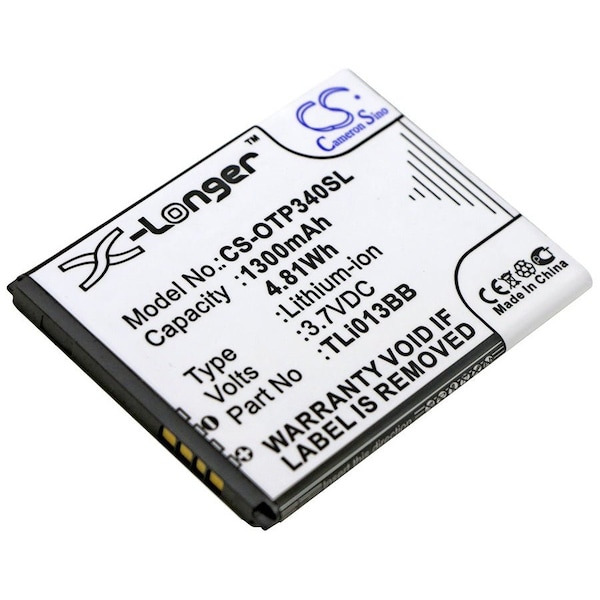 This is a replacement compatible with a Orange Mobile Phone BatteryVolts: 3.7V 3.7 VoltsCapacity: 1300mAh 1.3AhType: Li-ionColor: BlackOrange Klif Replacement Batteries.Mfgr Part # TLi013B2 TLi013BBDimensions: 2.53 in. L x 1.97 in. W x 0.17 H in.Weight: 0.1 lbWarranty: 1 YearDisclaimer: Our products are not affiliated with or authorized by Orange.FAQsWhat is the best replacement battery for the Orange Klif Mobile Phone Battery?The CS-OTP340SL.2 is the best replacement battery for the Orange Klif Mobile Phone Battery. What is your return policy and battery warranty?Our batteries are backed by easy 30-day returns and a 12-month warranty. How do I find the best replacement Battery?Our search tool at the top of the website should give you the best results. Search by brand or part number to see if we have the right match for you. What does Li-ion and Ni-MH mean?They represent different types of rechargeable batteries. Li-ion stands for Lithium Ion, lithium ions move from the negative electrode through an electrolyte to the positive electrode during discharge and back when charging. Ni-MH stands for nickel-metal hydride where the negative electrode is made from a hydrogen-absorbing alloy. Do you have a wholesale, reseller and large volume purchase program?Yes, our bulk purchasing program saves you money and allow you to obtain the batteries you need in one easy, hassle-free transaction. Apply here.