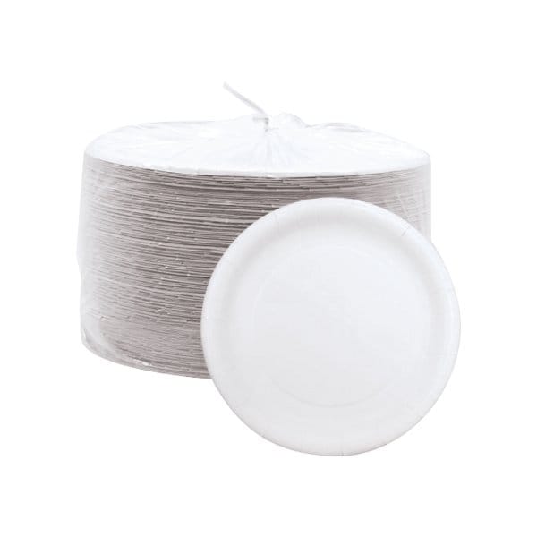 Sturdy paper plates are disposable and won't melt with hot food or in the microwave. Work well for both cold or hot food; Heavy-duty plates are perfect for heavy or moist food applications; Microwavable. Sold in a quantity of 200 per case.