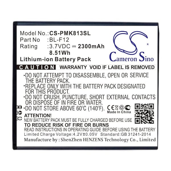 This is a replacement compatible with a Phicomm Mobile Phone BatteryVolts: 3.7V 3.7 VoltsCapacity: 2300mAh 2.3AhType: Li-ionColor: BlackPhicomm i813 Dual SIM i813w Replacement Batteries.Mfgr Part # BL-F12Dimensions: 2.78 in. L x 2.08 in. W x 0.19 H in.Weight: 0.2 lbWarranty: 1 YearDisclaimer: Our products are not affiliated with or authorized by Phicomm.FAQsWhat is the best replacement battery for the Phicomm i813 Dual SIM i813w Mobile Phone Battery?The CS-PMK813SL is the best replacement battery for the Phicomm i813 Dual SIM i813w Mobile Phone Battery. What is your return policy and battery warranty?Our batteries are backed by easy 30-day returns and a 12-month warranty. How do I find the best replacement Battery?Our search tool at the top of the website should give you the best results. Search by brand or part number to see if we have the right match for you. What does Li-ion and Ni-MH mean?They represent different types of rechargeable batteries. Li-ion stands for Lithium Ion, lithium ions move from the negative electrode through an electrolyte to the positive electrode during discharge and back when charging. Ni-MH stands for nickel-metal hydride where the negative electrode is made from a hydrogen-absorbing alloy. Do you have a wholesale, reseller and large volume purchase program?Yes, our bulk purchasing program saves you money and allow you to obtain the batteries you need in one easy, hassle-free transaction. Apply here.