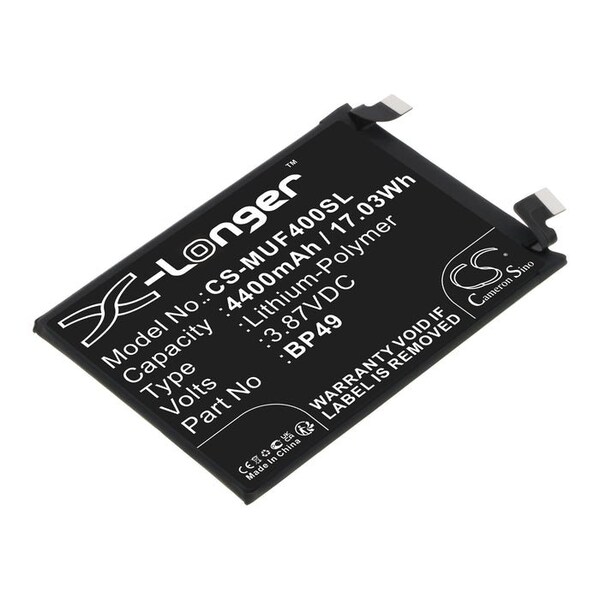 This is a replacement compatible with a Poco Mobile Phone BatteryVolts: 3.87V 3.87 VoltsCapacity: 4400mAh 4.4AhType: Li-PolymerColor: BlackPoco 22021211RG 22021211RI F4 5G Replacement Batteries.Mfgr Part # BP49Dimensions: 3.51 in. L x 2.57 in. W x 0.17 H in.Weight: 0.2 lbWarranty: 1 YearDisclaimer: Our products are not affiliated with or authorized by Poco.FAQsWhat is the best replacement battery for the Poco 22021211RG 22021211RI F4 5G Mobile Phone Battery?The CS-MUF400SL is the best replacement battery for the Poco 22021211RG 22021211RI F4 5G Mobile Phone Battery. What is your return policy and battery warranty?Our batteries are backed by easy 30-day returns and a 12-month warranty. How do I find the best replacement Battery?Our search tool at the top of the website should give you the best results. Search by brand or part number to see if we have the right match for you. What does Li-ion and Ni-MH mean?They represent different types of rechargeable batteries. Li-ion stands for Lithium Ion, lithium ions move from the negative electrode through an electrolyte to the positive electrode during discharge and back when charging. Ni-MH stands for nickel-metal hydride where the negative electrode is made from a hydrogen-absorbing alloy. Do you have a wholesale, reseller and large volume purchase program?Yes, our bulk purchasing program saves you money and allow you to obtain the batteries you need in one easy, hassle-free transaction. Apply here.