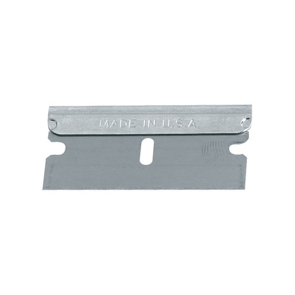Universal replacement blades. Single edge razor blade fits all standard razor blade tools; Long-lasting blade is sharpened to precision; Use blade within a tool or use the blade as a tool by itself; Double-notch, .009 thickness. This product is equivalent to part number: H-595B. Sold in a quantity of 100 per case.