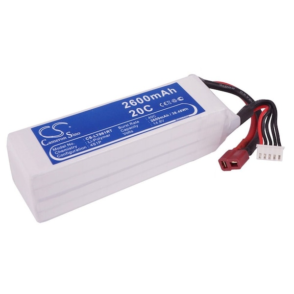 This is a replacement compatible with a RC Car BatteryVolts: 14.8V 14.8 VoltsCapacity: 2600mAh 2.6AhType: Li-PolymerColor: WhiteRC CS-LT961RT Replacement Batteries.Mfgr Part # CS-LT961RTDimensions: 4.59 in. L x 1.36 in. W x 1.25 H in.Weight: 1 lbWarranty: 1 YearDisclaimer: Our products are not affiliated with or authorized by RC.FAQsWhat is the best replacement battery for the RC CS-LT961RT 2600mAh Car Battery?The CS-LT961RT.1 is the best replacement battery for the RC CS-LT961RT 2600mAh Car Battery. What is your return policy and battery warranty?Our batteries are backed by easy 30-day returns and a 12-month warranty. How do I find the best replacement Battery?Our search tool at the top of the website should give you the best results. Search by brand or part number to see if we have the right match for you. What does Li-ion and Ni-MH mean?They represent different types of rechargeable batteries. Li-ion stands for Lithium Ion, lithium ions move from the negative electrode through an electrolyte to the positive electrode during discharge and back when charging. Ni-MH stands for nickel-metal hydride where the negative electrode is made from a hydrogen-absorbing alloy. Do you have a wholesale, reseller and large volume purchase program?Yes, our bulk purchasing program saves you money and allow you to obtain the batteries you need in one easy, hassle-free transaction. Apply here.
