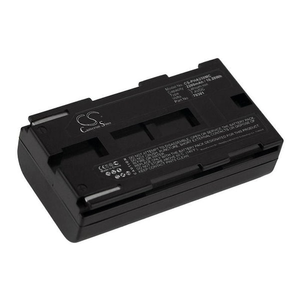 This is a replacement compatible with a Riegl Camera BatteryVolts: 7.4V 7.4 VoltsCapacity: 2200mAh 2.2AhType: Li-ionColor: BlackRiegl FG21P FG21-P Replacement Batteries.Mfgr Part # 70301Dimensions: 2.79 in. L x 1.5 in. W x 0.83 H in.Weight: 0.4 lbWarranty: 1 YearDisclaimer: Our products are not affiliated with or authorized by Riegl.FAQsWhat is the best replacement battery for the Riegl FG21P FG21-P 2200mAh Camera Battery?The CS-PHA250MC.4 is the best replacement battery for the Riegl FG21P FG21-P 2200mAh Camera Battery. What is your return policy and battery warranty?Our batteries are backed by easy 30-day returns and a 12-month warranty. How do I find the best replacement Battery?Our search tool at the top of the website should give you the best results. Search by brand or part number to see if we have the right match for you. What does Li-ion and Ni-MH mean?They represent different types of rechargeable batteries. Li-ion stands for Lithium Ion, lithium ions move from the negative electrode through an electrolyte to the positive electrode during discharge and back when charging. Ni-MH stands for nickel-metal hydride where the negative electrode is made from a hydrogen-absorbing alloy. Do you have a wholesale, reseller and large volume purchase program?Yes, our bulk purchasing program saves you money and allow you to obtain the batteries you need in one easy, hassle-free transaction. Apply here.