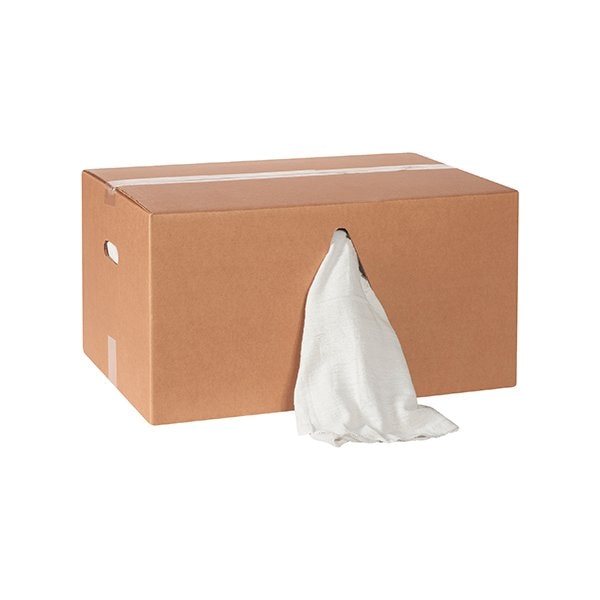 Rags in convenient dispensing boxes. Launderable for reuse; Edges are hemmed to resist unraveling.