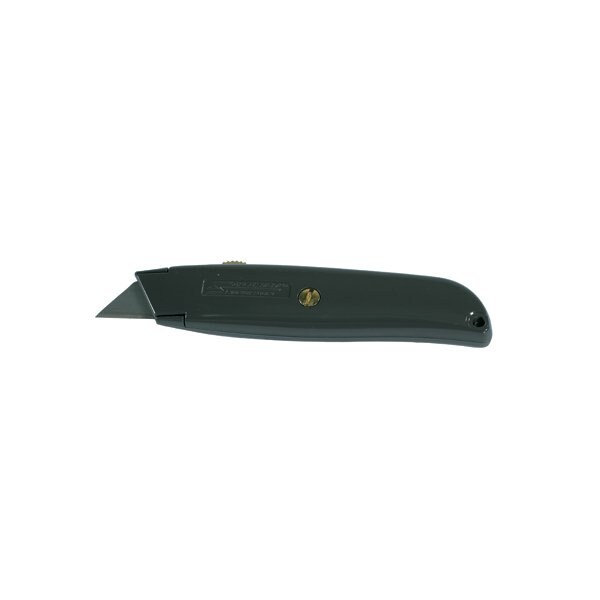Retractable utility knife has an ergonomic handle with an overlock nose for blade stability. Constructed from high quality, die cast metal; Ergonomic handle; Overlock nose for blade stability; Includes 3 SB-92 Standard Utility Blades KN210. Sold in a quantity of 10 per case.