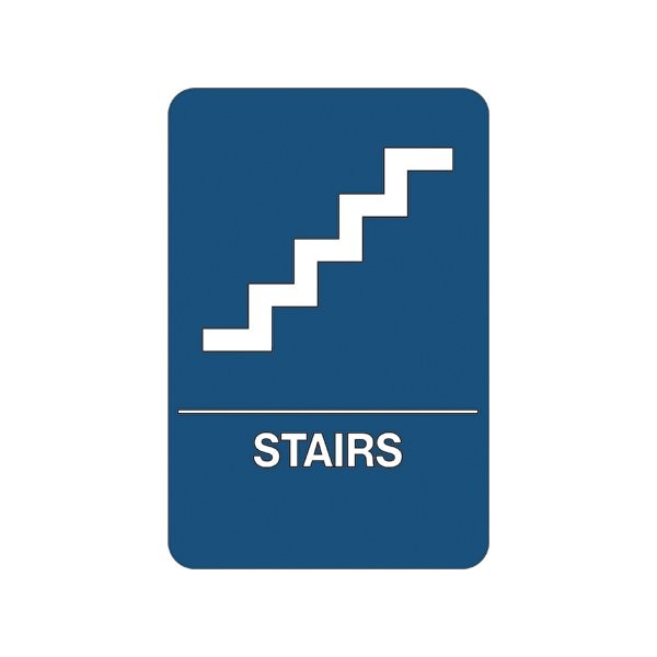 Signs meet the Americans with Disabilities Act ADA requirements. Made from 1/4'' thick ABS plastic; Includes pre-applied, self adhesive, double sided foam tape to mount signs. This product is equivalent to part number: S-22035BLU.