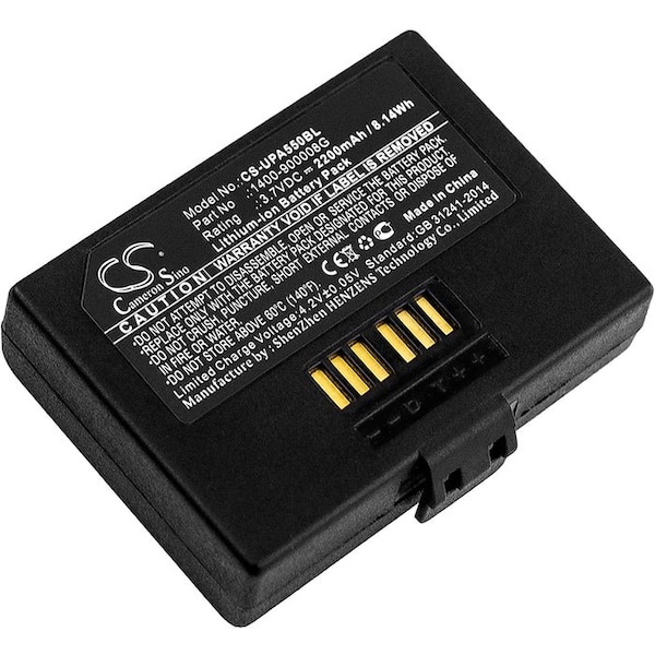 This is a replacement compatible with a Unitech Barcode BatteryVolts: 3.7V 3.7 VoltsCapacity: 2200mAh 2.2AhType: Li-ionColor: BlackUnitech PA550 Replacement Batteries.Mfgr Part # 1400-900008GDimensions: 2.11 in. L x 1.72 in. W x 0.63 H in.Weight: 0.2 lbWarranty: 1 YearDisclaimer: Our products are not affiliated with or authorized by Unitech.FAQsWhat is the best replacement battery for the Unitech PA550 Barcode Battery?The CS-UPA550BL is the best replacement battery for the Unitech PA550 Barcode Battery. What is your return policy and battery warranty?Our batteries are backed by easy 30-day returns and a 12-month warranty. How do I find the best replacement Battery?Our search tool at the top of the website should give you the best results. Search by brand or part number to see if we have the right match for you. What does Li-ion and Ni-MH mean?They represent different types of rechargeable batteries. Li-ion stands for Lithium Ion, lithium ions move from the negative electrode through an electrolyte to the positive electrode during discharge and back when charging. Ni-MH stands for nickel-metal hydride where the negative electrode is made from a hydrogen-absorbing alloy. Do you have a wholesale, reseller and large volume purchase program?Yes, our bulk purchasing program saves you money and allow you to obtain the batteries you need in one easy, hassle-free transaction. Apply here.