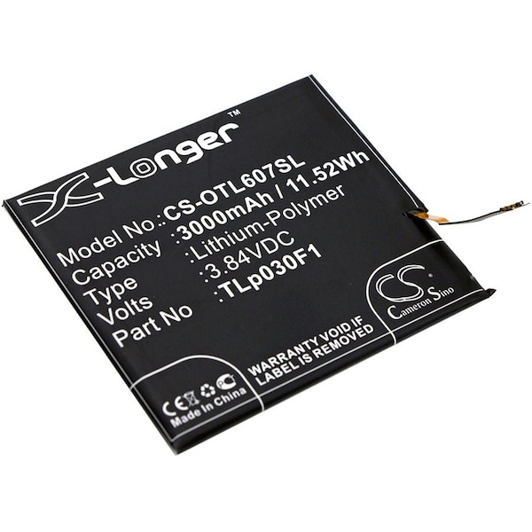 This is a replacement compatible with a Vodafone Mobile Phone BatteryVolts: 3.84V 3.84 VoltsCapacity: 3000mAh 3AhType: Li-PolymerColor: BlackVodafone Smart Platinum 7 VFD 900 Replacement Batteries.Mfgr Part # TLp030F1 TLp030F2Dimensions: 3.02 in. L x 2.61 in. W x 0.14 H in.Weight: 0.2 lbWarranty: 1 YearDisclaimer: Our products are not affiliated with or authorized by Vodafone.FAQsWhat is the best replacement battery for the Vodafone Smart Platinum 7 VFD 900 Mobile Phone Battery?The CS-OTL607SL.3 is the best replacement battery for the Vodafone Smart Platinum 7 VFD 900 Mobile Phone Battery. What is your return policy and battery warranty?Our batteries are backed by easy 30-day returns and a 12-month warranty. How do I find the best replacement Battery?Our search tool at the top of the website should give you the best results. Search by brand or part number to see if we have the right match for you. What does Li-ion and Ni-MH mean?They represent different types of rechargeable batteries. Li-ion stands for Lithium Ion, lithium ions move from the negative electrode through an electrolyte to the positive electrode during discharge and back when charging. Ni-MH stands for nickel-metal hydride where the negative electrode is made from a hydrogen-absorbing alloy. Do you have a wholesale, reseller and large volume purchase program?Yes, our bulk purchasing program saves you money and allow you to obtain the batteries you need in one easy, hassle-free transaction. Apply here.