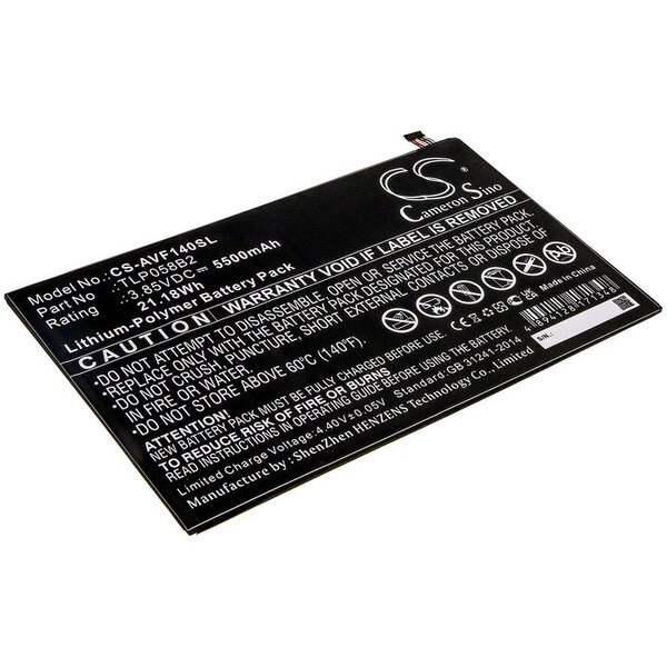 This is a replacement compatible with a Vodafone Tablet BatteryVolts: 3.85V 3.85 VoltsCapacity: 5500mAh 5.5AhType: Li-PolymerVodafone Tab Prime 7 VFD-1400 Replacement Batteries.Mfgr Part # TLP058B2Dimensions: 7.28 in. L x 4.32 in. W x 0.09 H in.Weight: 0.5 lbWarranty: 1 YearDisclaimer: Our products are not affiliated with or authorized by Vodafone.FAQsWhat is the best replacement battery for the Vodafone Tab Prime 7 VFD-1400 Tablet Battery?The CS-AVF140SL is the best replacement battery for the Vodafone Tab Prime 7 VFD-1400 Tablet Battery. What is your return policy and battery warranty?Our batteries are backed by easy 30-day returns and a 12-month warranty. How do I find the best replacement Battery?Our search tool at the top of the website should give you the best results. Search by brand or part number to see if we have the right match for you. What does Li-ion and Ni-MH mean?They represent different types of rechargeable batteries. Li-ion stands for Lithium Ion, lithium ions move from the negative electrode through an electrolyte to the positive electrode during discharge and back when charging. Ni-MH stands for nickel-metal hydride where the negative electrode is made from a hydrogen-absorbing alloy. Do you have a wholesale, reseller and large volume purchase program?Yes, our bulk purchasing program saves you money and allow you to obtain the batteries you need in one easy, hassle-free transaction. Apply here.