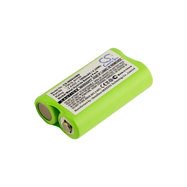 This is a replacement compatible with a Welch-Allyn Medical BatteryVolts: 2.4V 2.4 VoltsCapacity: 1800mAh 1.8AhType: Ni-MHColor: GreenWelch-Allyn Compacset 93400 Compact Otoscope 93400 Replacement Batteries.Mfgr Part # 72610 N1155Dimensions: 1.99 in. L x 1.15 in. W x 0.62 H in.Weight: 0.2 lbWarranty: 1 YearDisclaimer: Our products are not affiliated with or authorized by Welch-Allyn.FAQsWhat is the best replacement battery for the Welch-Allyn Compacset 93400 Compact Otoscope 93400 Medical Battery?The CS-WB934MD is the best replacement battery for the Welch-Allyn Compacset 93400 Compact Otoscope 93400 Medical Battery. What is your return policy and battery warranty?Our batteries are backed by easy 30-day returns and a 12-month warranty. How do I find the best replacement Battery?Our search tool at the top of the website should give you the best results. Search by brand or part number to see if we have the right match for you. What does Li-ion and Ni-MH mean?They represent different types of rechargeable batteries. Li-ion stands for Lithium Ion, lithium ions move from the negative electrode through an electrolyte to the positive electrode during discharge and back when charging. Ni-MH stands for nickel-metal hydride where the negative electrode is made from a hydrogen-absorbing alloy. Do you have a wholesale, reseller and large volume purchase program?Yes, our bulk purchasing program saves you money and allow you to obtain the batteries you need in one easy, hassle-free transaction. Apply here.